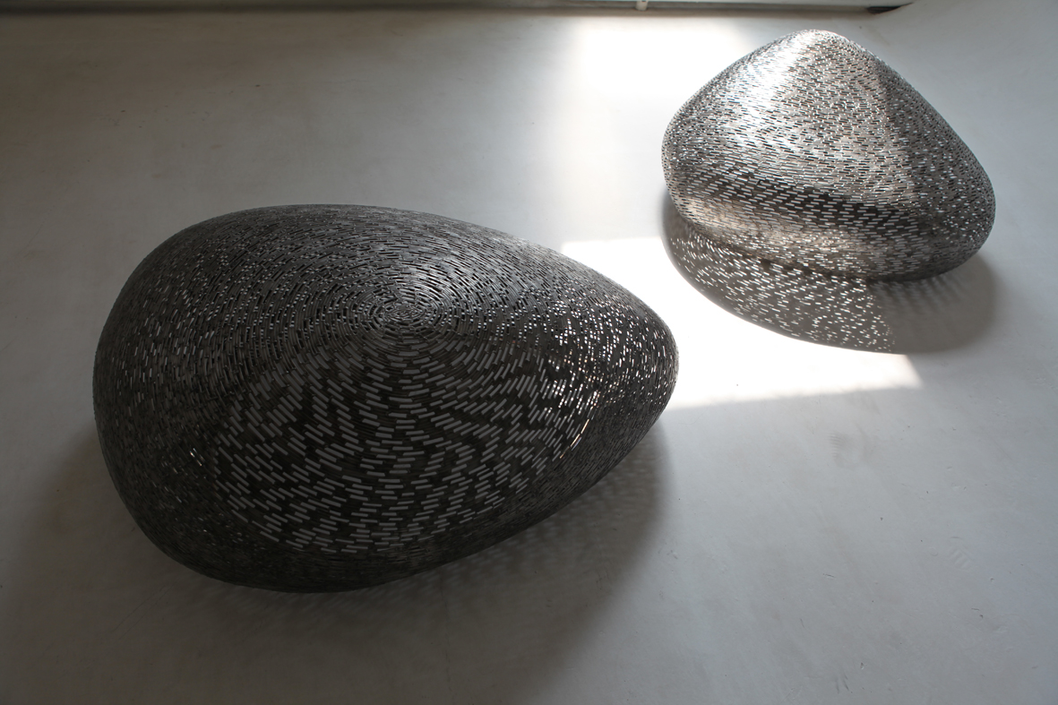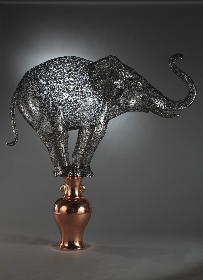 從小習字的藝術家鄭路,對中國文字有著深刻的情感,藝術家利用中國文字獨有的形態與氣質。以文字作為媒介構成的其雕塑作品的元素,作品形象由鏤空的中國書法文字焊接而成。文字,形態為中國傳統書法造型。作品主題思想,與文字形成一種有機關係:或文字闡述了作品的意韻,或文字與作品本身存在密切關係。文字用為信息載體,更是一個個美妙的符號,深深體現出中國古代哲學思想,如“空”、“虛”、“陰”、“陽”。 符號信息在“存”與“留”, “虛”與“實”二種表像下各自完成形式的使命, 繼續呼應著、矛盾著, 不斷關聯著。